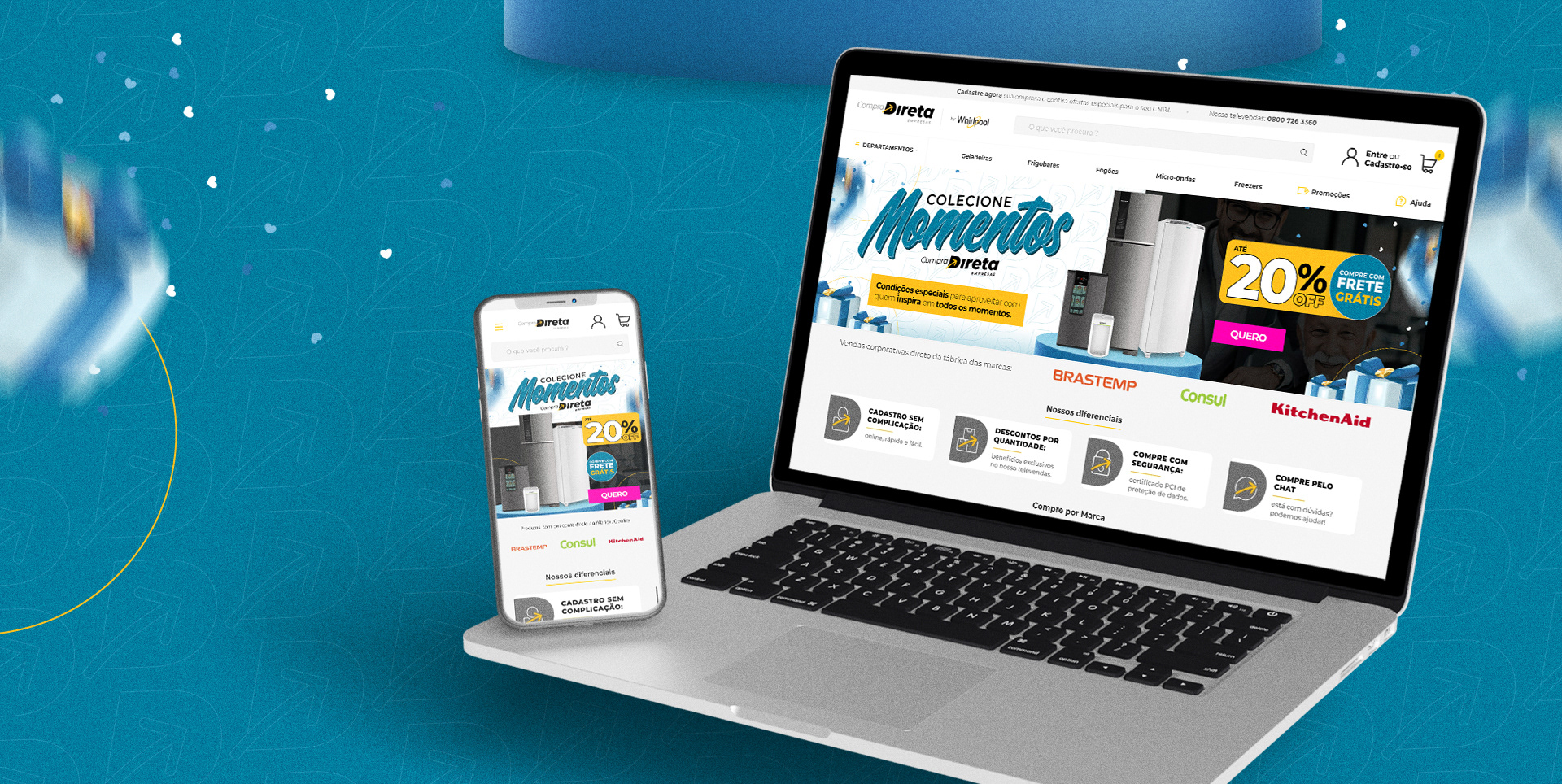 Key visual da campanha Dia dos pais em 2022 - Compra Direta Empresas - Canal oficial B2B da Consul, Brastemp e KitchenAID