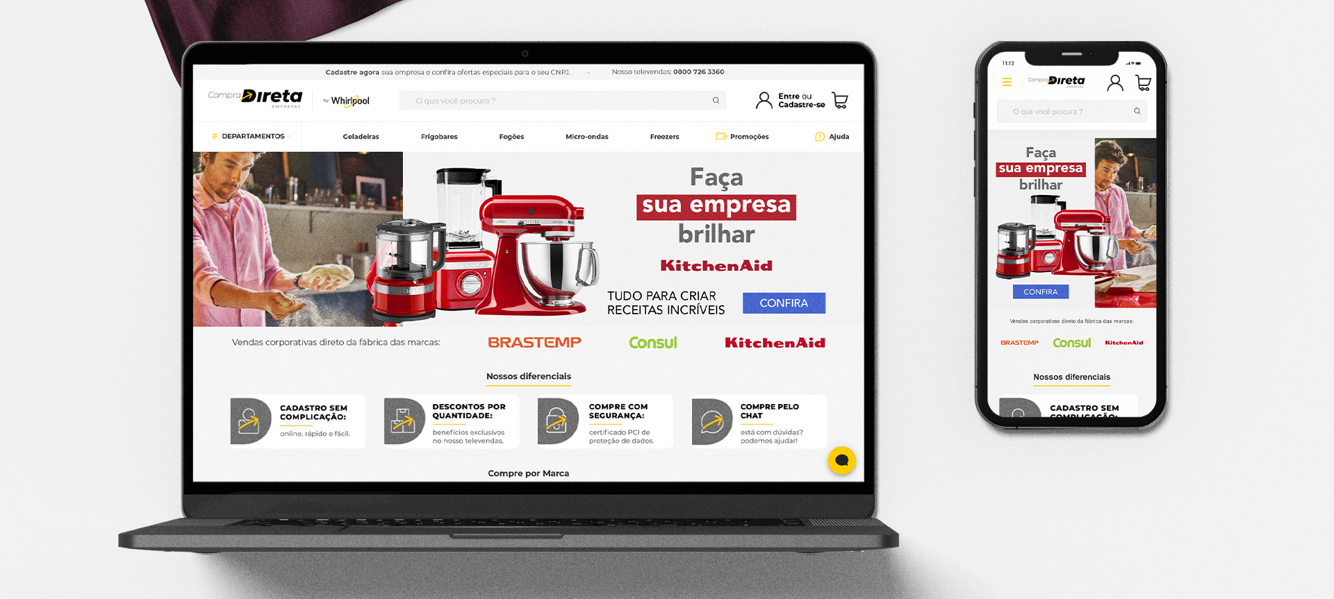 Key visual e apresentação de lançamento da KitchenAid nos canais de vendas corporativas da Whirpool | Compra Direta Empresas